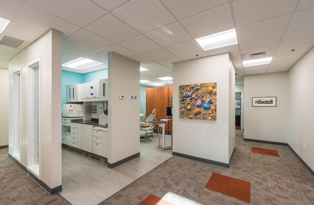 Ambra Dental’s project included the construction and build out of their new location with several requirements unique to dental practices. The finished office features: 6 surgical-treatment rooms, a large reception & waiting area, dental lab and employee lounge.