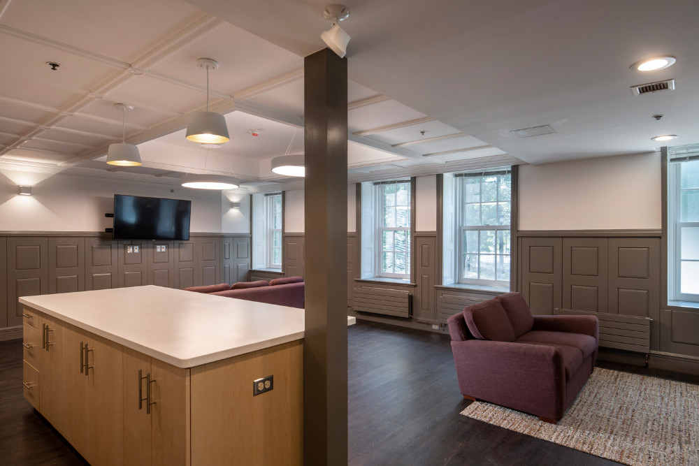 Working with CBT Architects, 6 Common Rooms have been upgraded, creating more inviting spaces for the students. All finishes, electrical and technological systems were replaced.